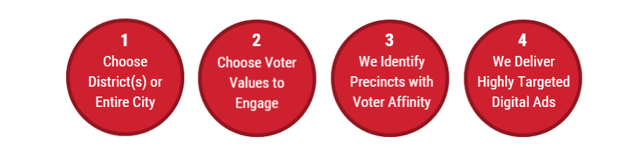 Say your campaign wants to send a "safer streets" message featuring an endorsement from Chief of Police Bill Scott. We'll provide a complete list of precincts stack-ranked by voter propensity for public safety and better resourced police. We use this data in combination with precise voter file targeting to deliver your message in any format (video, display, audio) to an ideal audience across all their favorite devices.